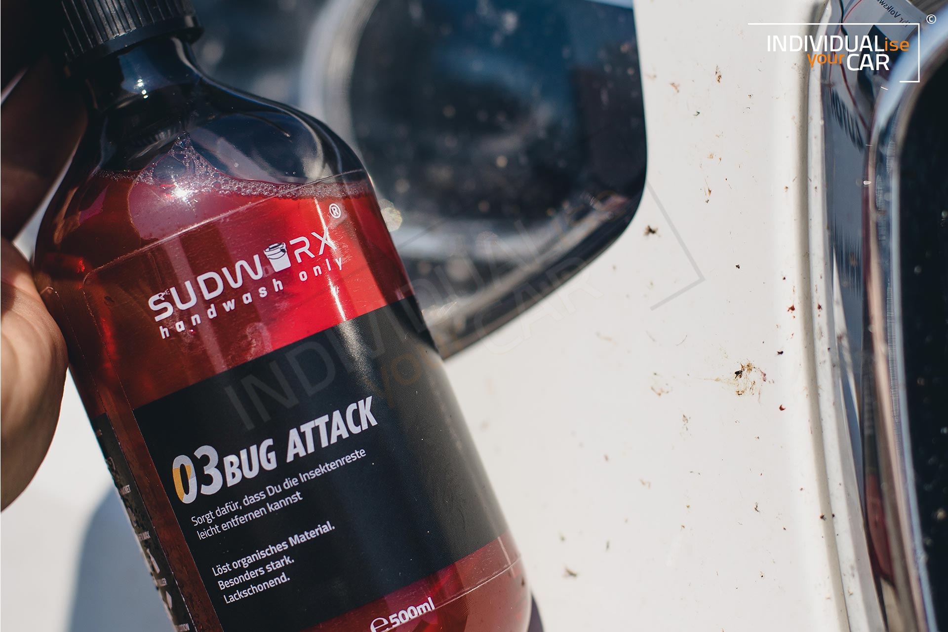 Neben dem angenehmen Duft und der roten Farbe ist unser Insektenreiniger so konzipiert, dass er den Lack Deines Wagen nicht angreift.